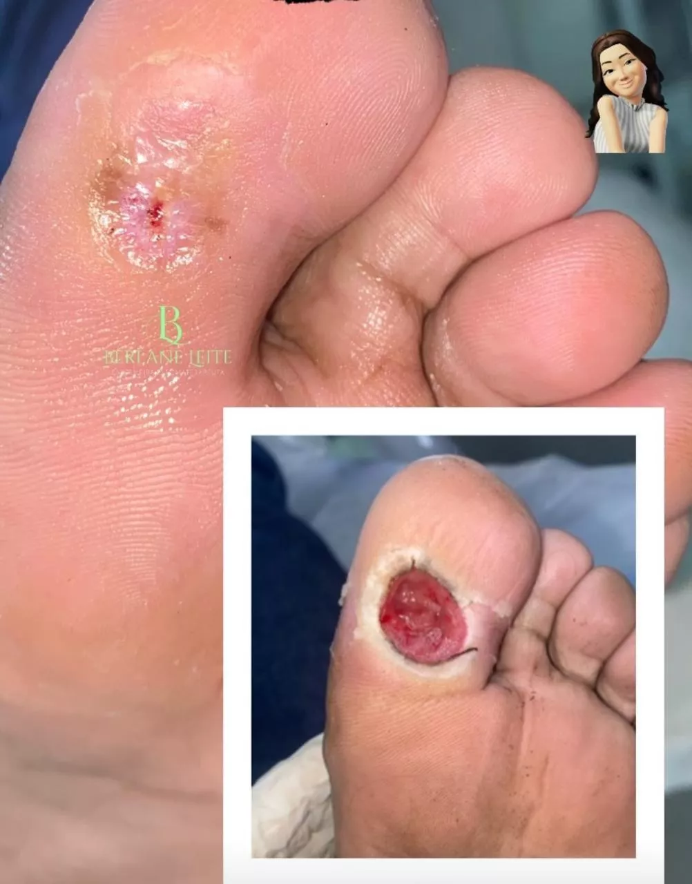 Cuidados com os pés, especialmente para diabéticos, prevenindo úlceras e amputações.